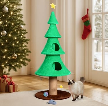 Featuring two cozy condos, multiple scratching posts, soft fleece surfaces, and built-in openings, it encourages natural instincts like climbing, hiding, and scratching.
