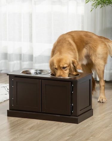 The dual bowl system separates food and water while the built-in storage keeps kibble, treats, and supplies neatly organized and within reach.