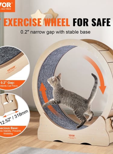 Help your indoor cat stay active, fit, and mentally stimulated with this extra-large exercise wheel designed for safe, natural running indoors.